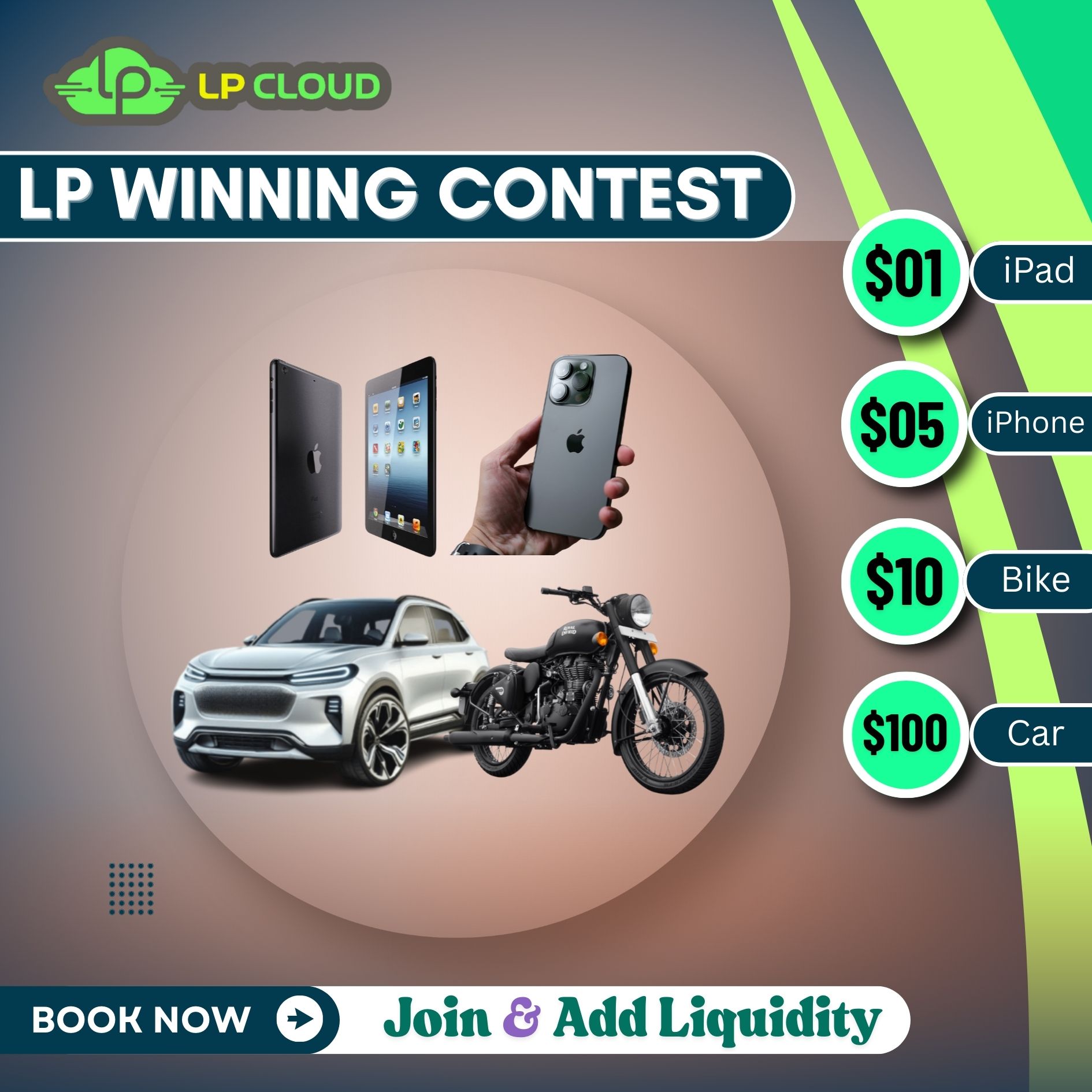 We have provided some extra gifts for our LP Partners. Via lucky draw Ex- iPad, iPhone, Royal Enfield, And Suv Car to Winner User.